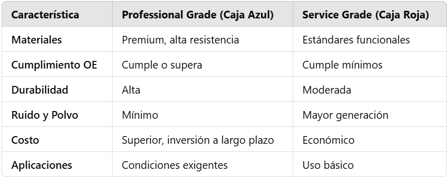°La línea Professional Grade es la preferida por mecánicos y talleres especializados debido a su consistencia en el rendimiento y facilidad de instalación.